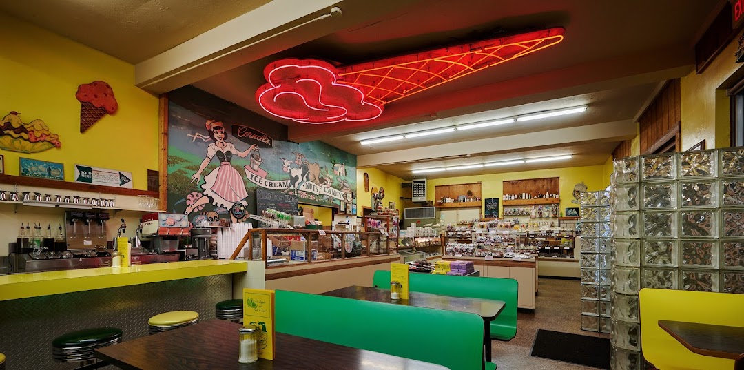 I like getting items out of the freezer case just inside the door to-go. If you do choose to eat there its an adorable place that looks more genuinely a step back in time than some chain locations that try-hard. Or it looks a little like a hometown diner. Its just a cheery little shop with friendly staff. You can tell everything is homemade (a lot of places say homemade and are virtually indistinguishable from store-bought and processed) and the portions are really good for the price. I tried some candies today and they were awesome, but I really like the ice cream drumsticks and cookie sandwiches. Excellent portions and quality, good price, pleasant atmosphere, friendly staff, variety of selection, unique experience. My only complaint would be that the entrance to the parking lot could use some work - there was a hubcap in it when I went the first time, and this time I had to dart in and it felt like I ran into a wall. GPS directed me around back where there is no parking.